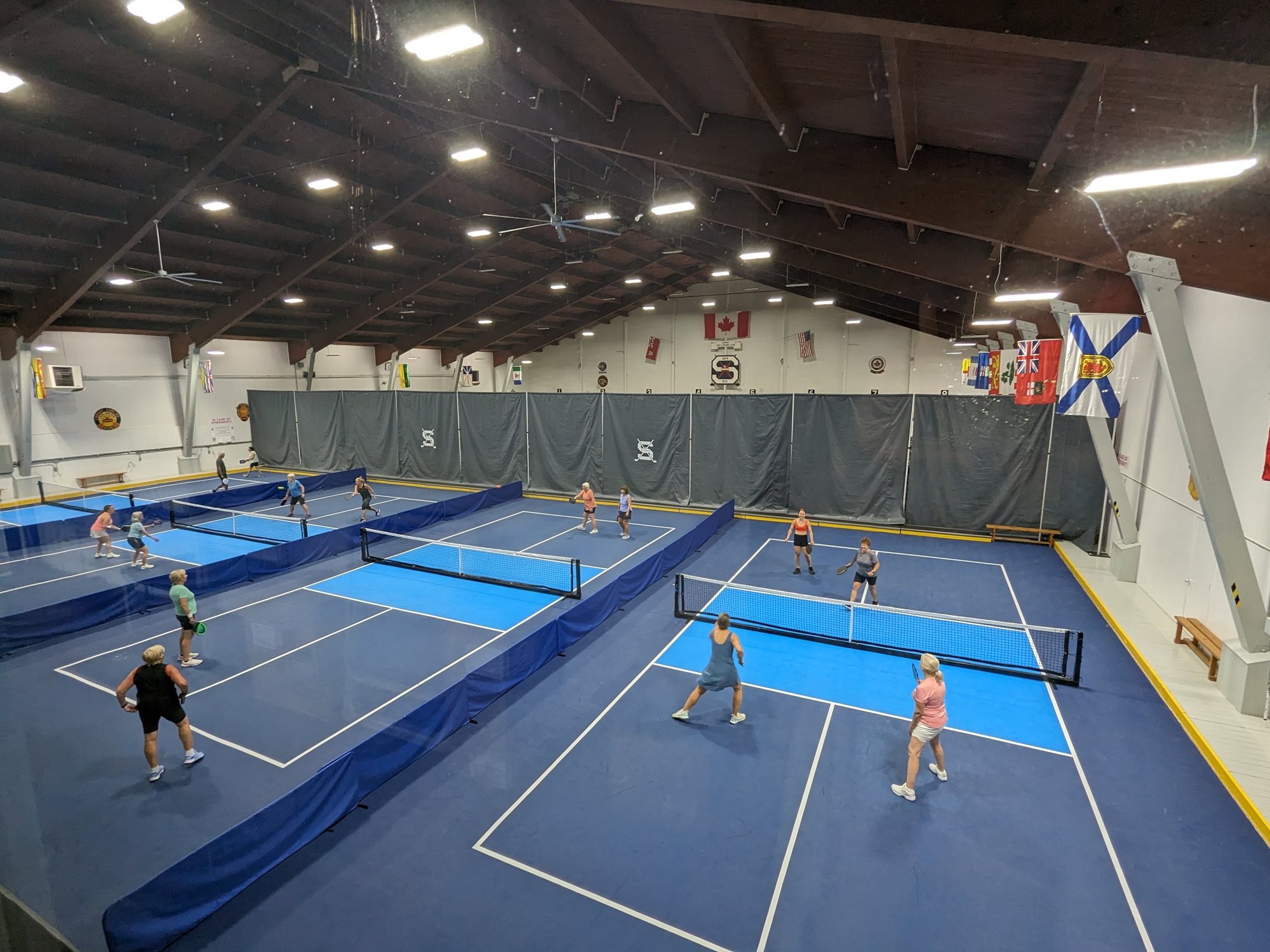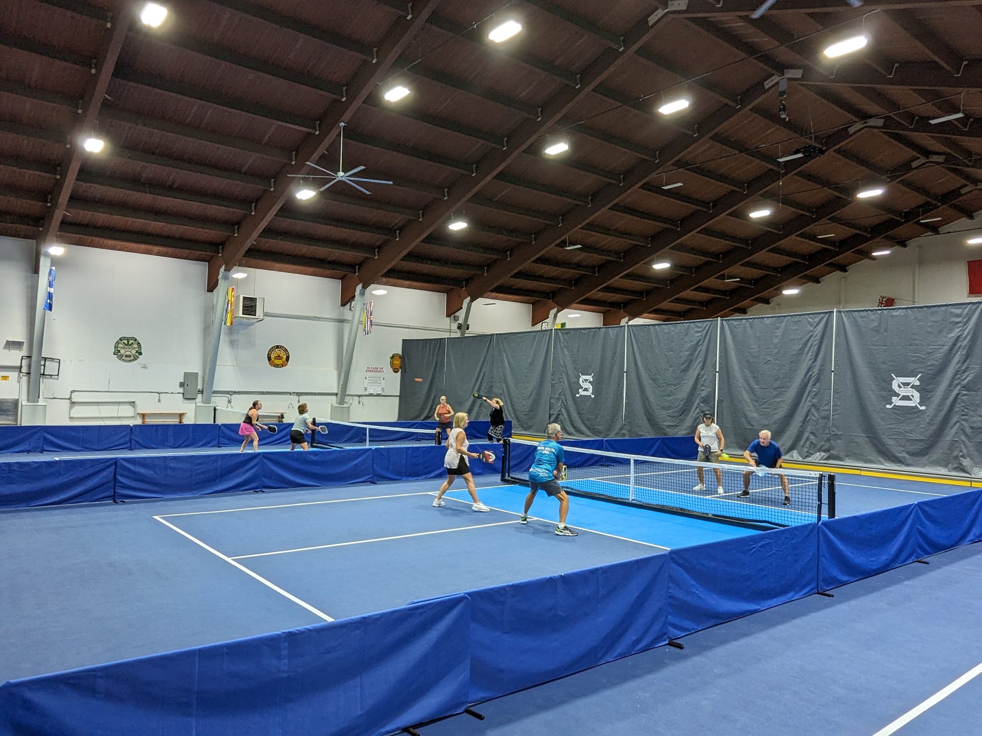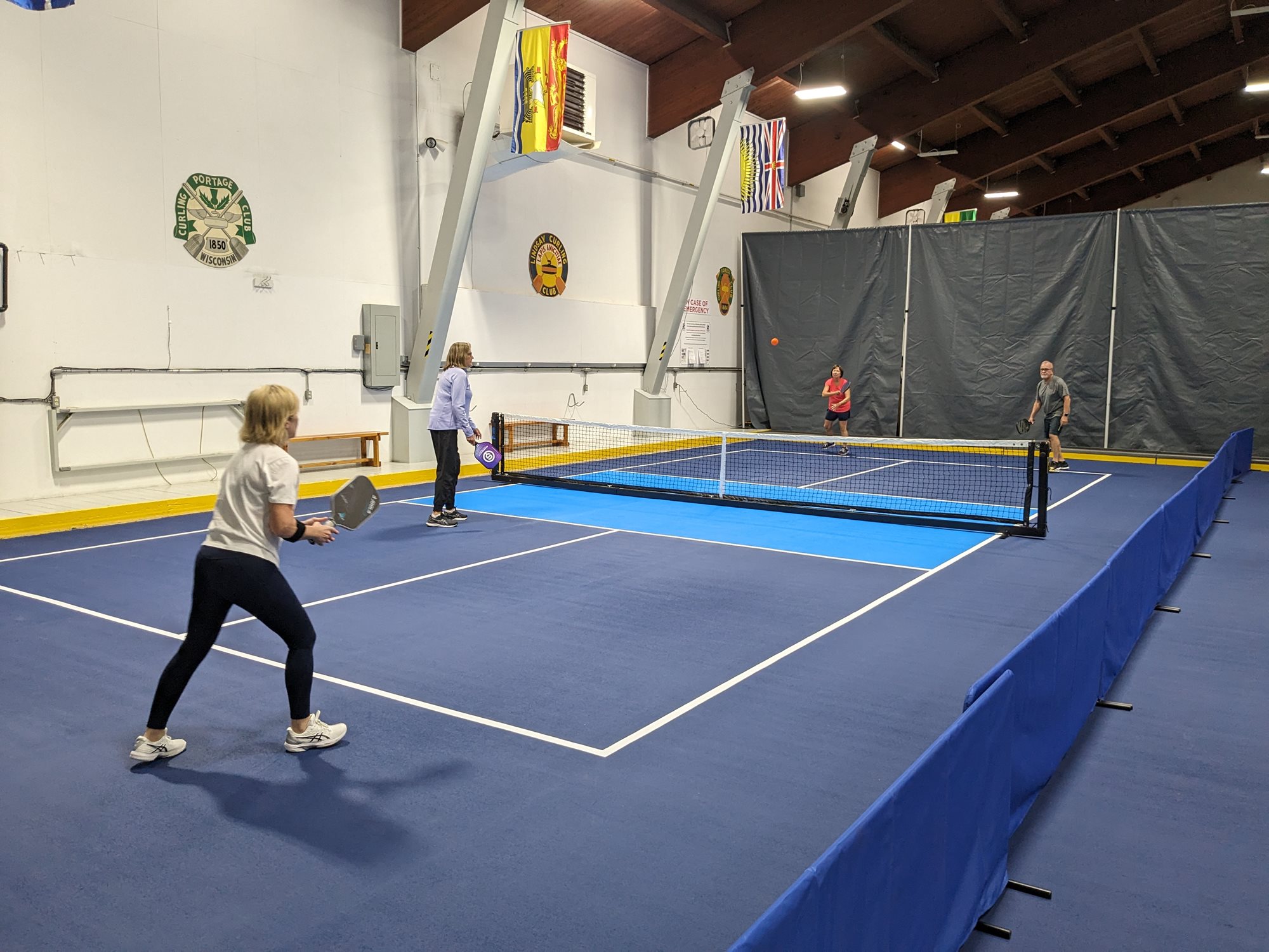 Avoid the outdoor elements and come play on our four, professional indoor Pickleball courts! All experience levels welcome. To play, you must become a Sarnia Golf & Curling Club member (either as a Social, Curling or Golf member), with Pickleball available as an add-on for an additional $150+HST. Choose from two membership options: "Pickleball - Social" or "Pickleball - Social Couple."